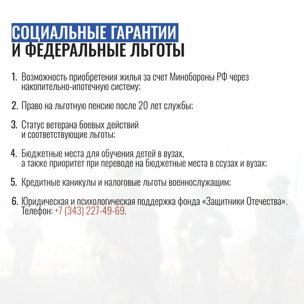 По вопросам заключения контракта вы можете обратиться: «Горячая линия» пункта отбора на военную службу по контракту - 8 (343) 229-05-11 г. Екатеринбург, ул. Бакинских Комиссаров, 173, 1 этаж
